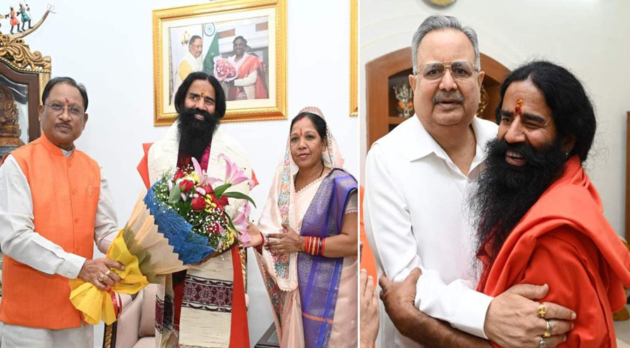 मुख्यमंत्री विष्णुदेव साय से योग गुरु बाबा रामदेव ने आज मुख्यमंत्री निवास में सौजन्य मुलाकात की. इस दौरान मुख्यमंत्री की धर्मपत्नी कौशल्या साय एवं परिजन उपस्थित थे. वहीं स्पीकर हाउस रायपुर पहुंचकर बाबा ने विधानसभा अध्यक्ष डॉ. रमन सिंह से भी शिष्टाचार भेंट की. इस अवसर पर डॉ. रमन सिंह ने योग के महत्व, शारीरिक एवं मानसिक स्वास्थ्य को लेकर सार्थक संवाद किया. बातचीत के दौरान दोनों ने योग को जन-जन तक पहुंचाने और समाज में स्वास्थ्य जागरूकता बढ़ाने के प्रयासों पर विस्तार से चर्चा की.